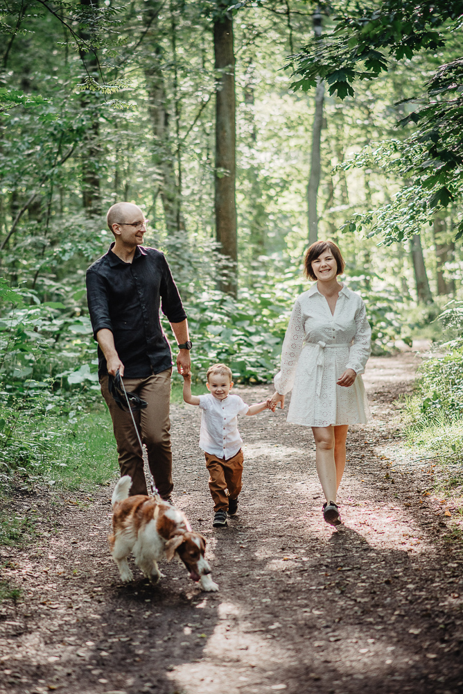 Fotografia rodzinna to dla mnie zawsze ogromna przyjemność. Tym razem miałam okazję spotkać się z cudowną rodziną (to nasze drugie spotkanie na sesję:)), ich kilkuletnim synkiem oraz energicznym psem o wdzięcznym imieniu Szyszka. Na miejsce sesji wybraliśmy Muchowiec w Katowicach – zielone, przestronne i niezwykle fotogeniczne miejsce, idealne do naturalnych ujęć w ruchu. Od pierwszych chwil atmosfera była wesoła i swobodna. Dzięki temu zamiast sztywnych pozowanych kadrów udało się uchwycić to, co w fotografii rodzinnej jest najcenniejsze – emocje i prawdziwą bliskość. Sesja była pełna śmiechu, spontanicznych gestów i czułości. Zdjęcia wyszły naturalne, dynamiczne, a jednocześnie bardzo rodzinne.